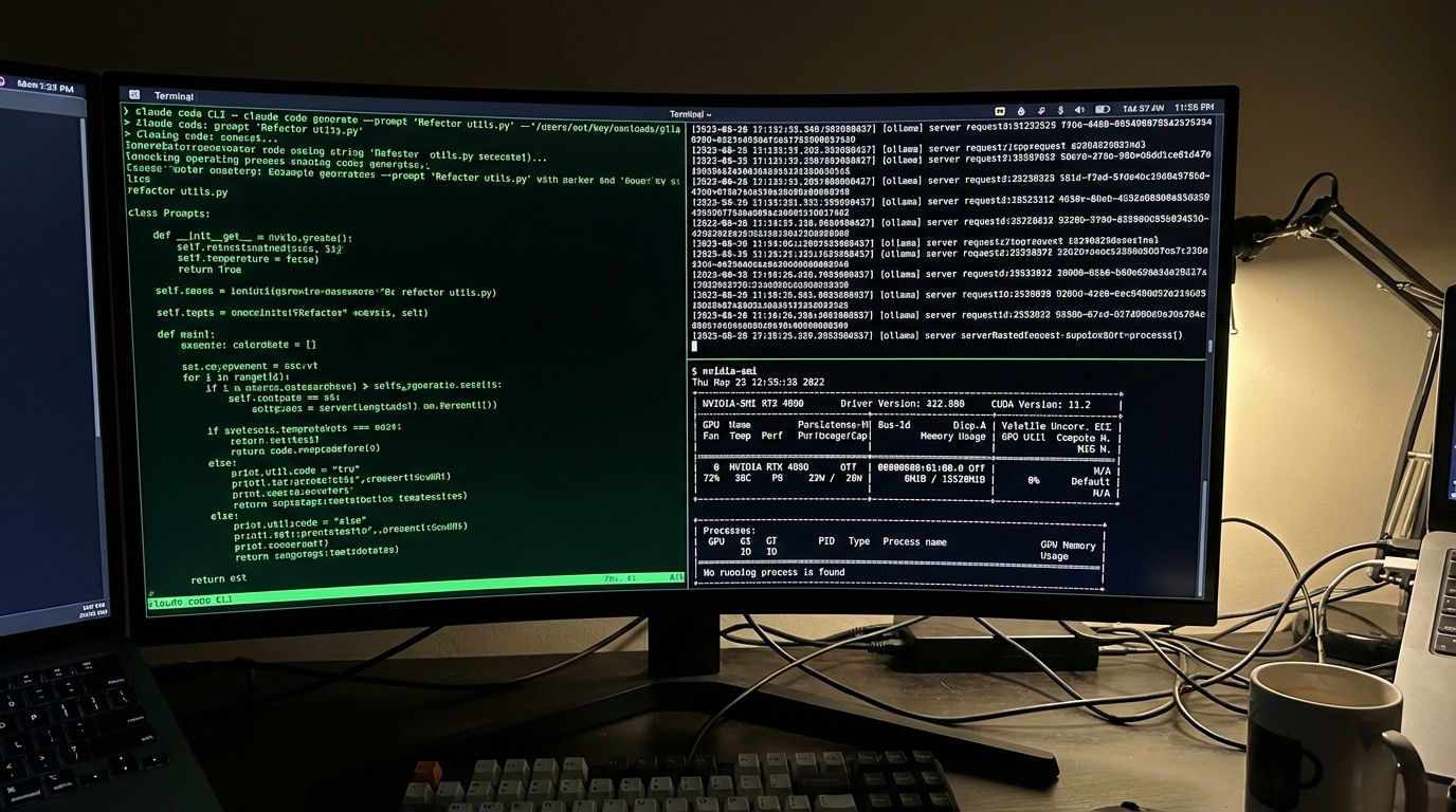 For sustained back-and-forth (debugging sessions, large refactors), expect 1-3 minutes per response on a 7B model with a mid-range GPU. Cloud Claude handles these in 5-20 seconds.